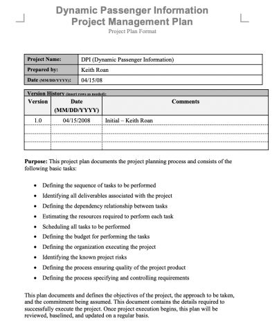 : This project plan documents the project planning process and consists of the following basic tasks: