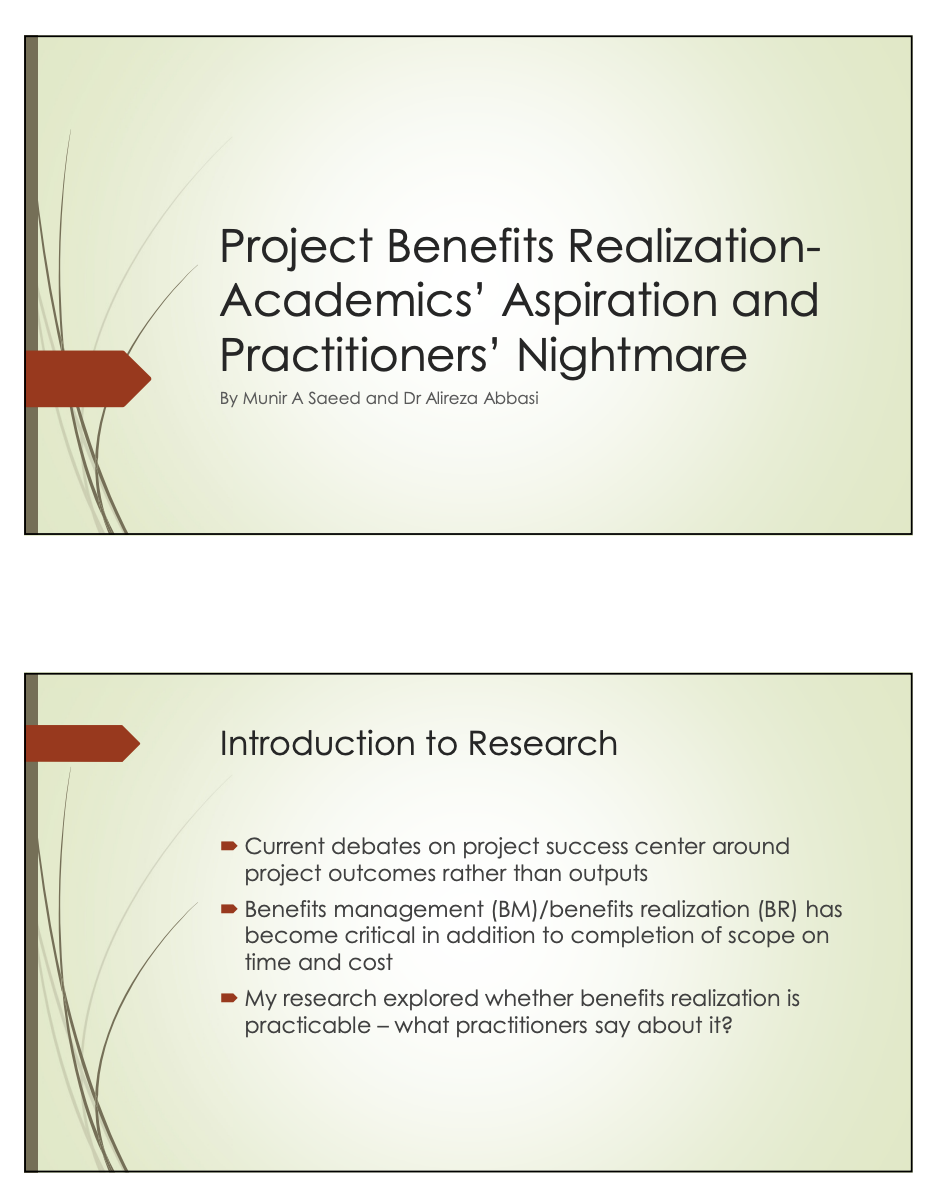 Project Benefits Realization- Academics’ Aspiration and Practitioners’ Nightmare