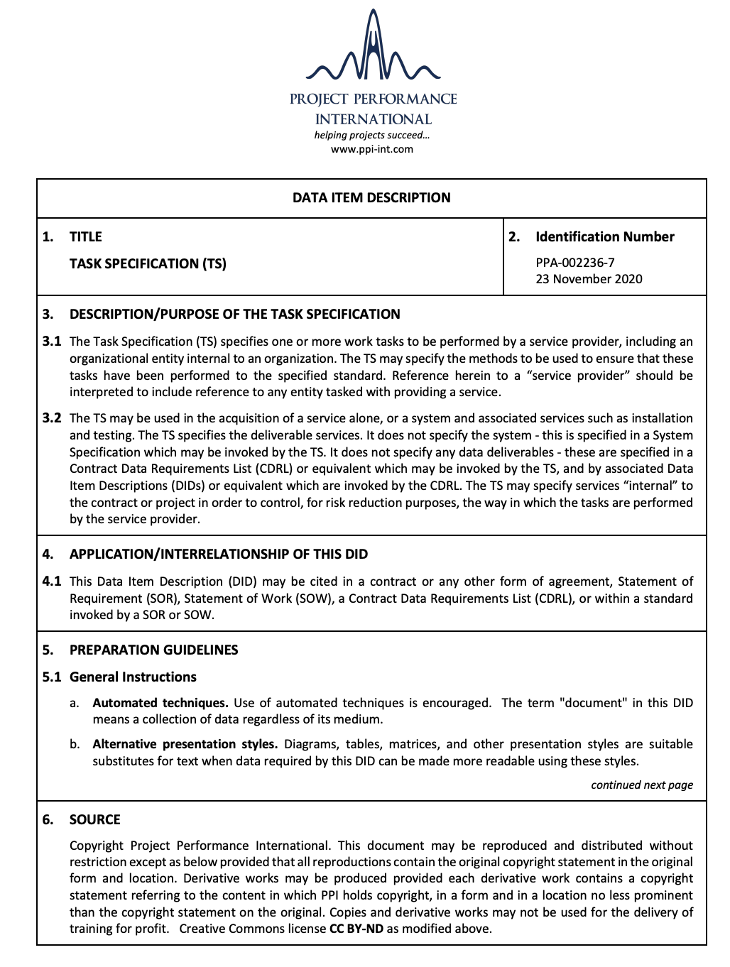 Item Descriptions (DIDs) or equivalent which are invoked by the CDRL. The TS may specify services “internal” to the contract or project in order to control, for risk reduction purposes, the way in which the tasks are performed