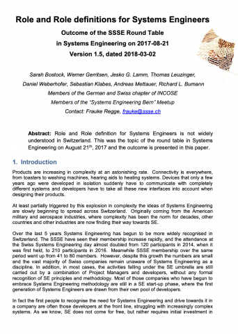 Role and Role definition for Systems Engineers is not widely understood in Switzerland. This was the topic of the round table in Systems Engineering on August 21th, 2017 and the outcome is presented in this paper.