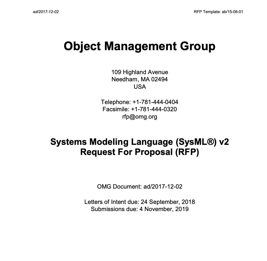 The Object Management Group (OMG) is a software consortium with an international membership of vendors, developers, and end users. Established in 1989, its mission is to help computer users solve enterprise integration problems by supplying open, vendor-neutral portability, interoperability and reusability specifications based on Model Driven Architecture (MDA). MDA defines an approach to IT system specification that separates the specification of system functionality from the specification of the implementation of that functionality on a specific technology platform, and provides a set of guidelines for structuring specifications expressed as models. OMG has published many widely-used specifications such as UML [UML], BPMN [BPMN], MOF [MOF], XMI [XMI], DDS [DDS] and CORBA [CORBA], to name but a few significant ones.